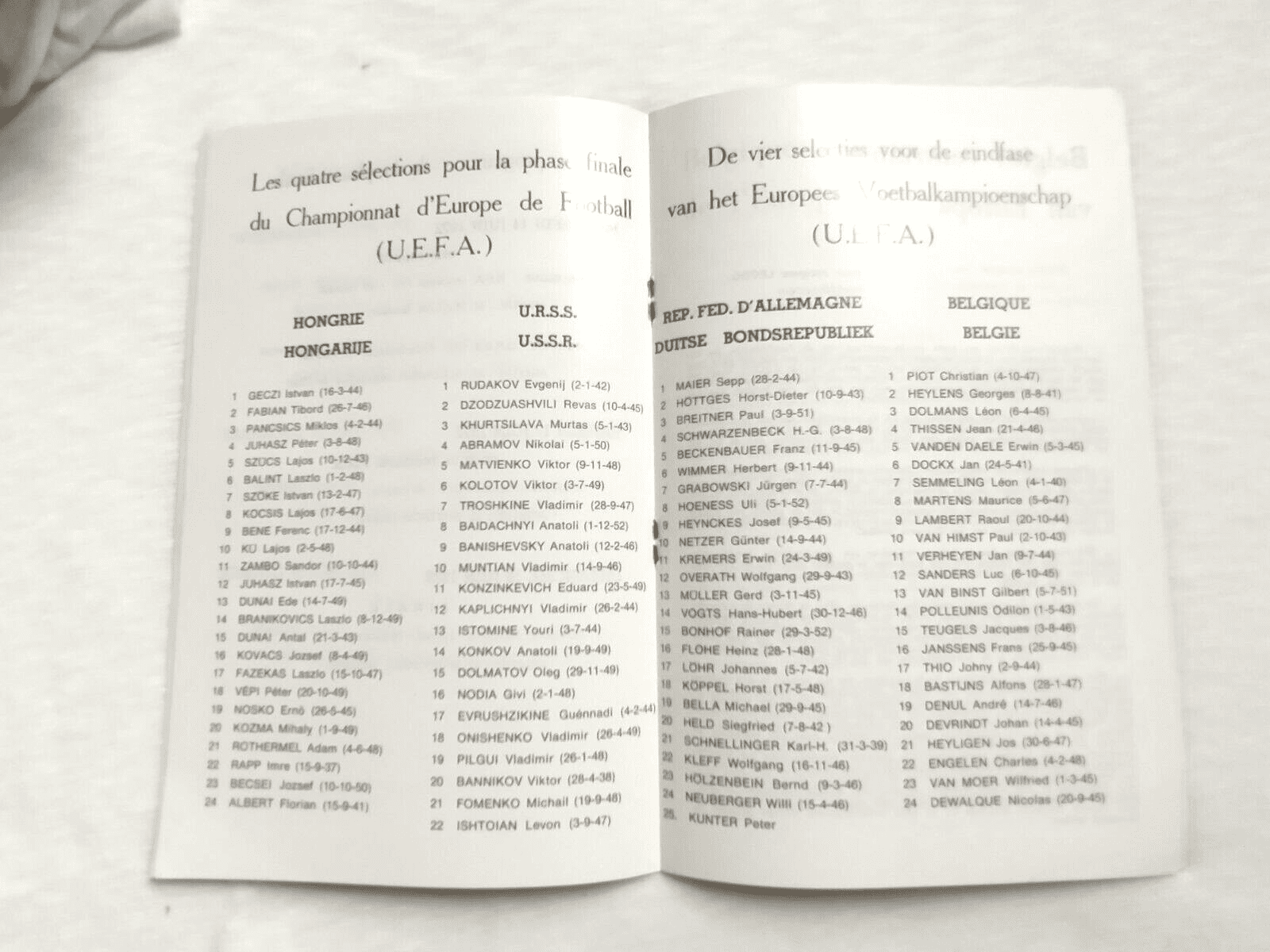 This lovely Original Programme is in very good condition for its age. ”Please see the picture as it forms part of the description”. You will always receive the actual item photographed. 1972 Hungary USSR, West Germany Belgium 14-18 June European Championships Tournament Brochure.