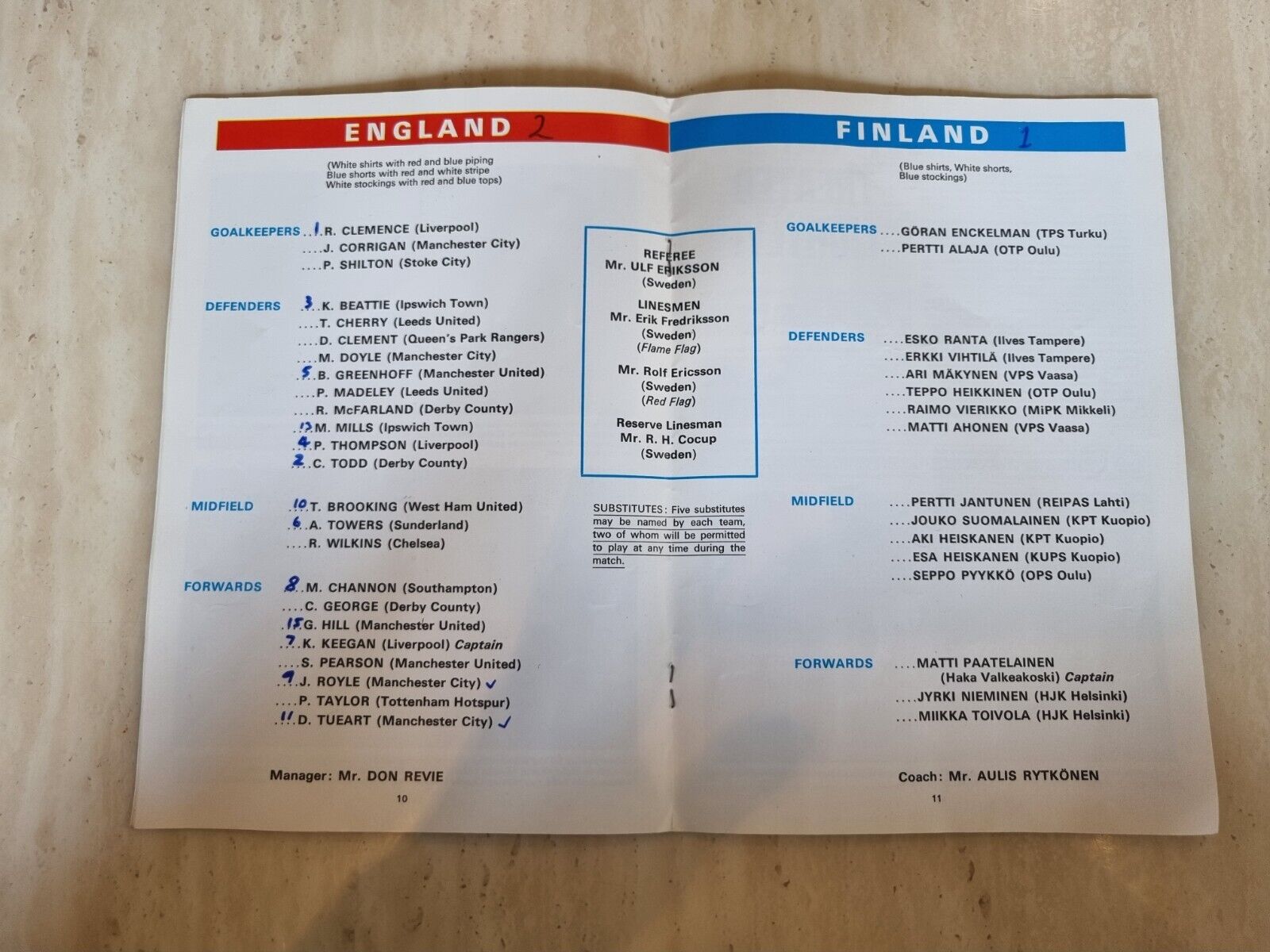 1976 England v Finland World Cup Qualifying Tournament Group II – 13th October
