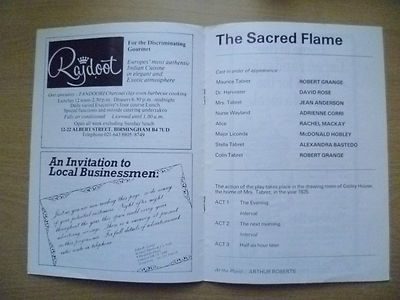 1977 Theatre Programme The Sacred Flame- Jean Anderson David Rose Adrienne Corri