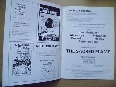 You are purchasing very collectable & Original theatre programme from 1977 Alexandra Theatre – Jean Anderson In The Sacred Flame By S Maugham
