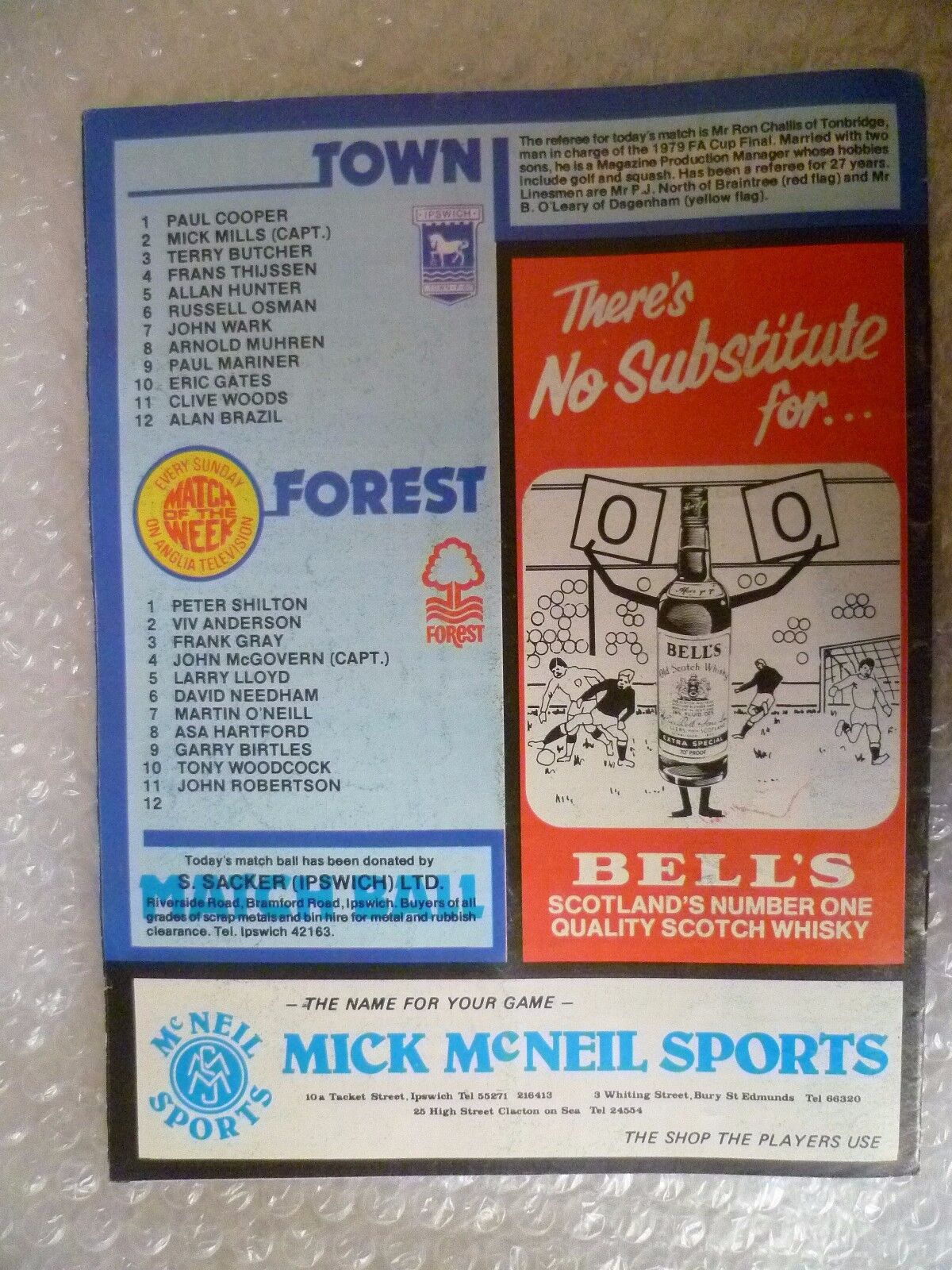 1979 IPSWICH TOWN v NOTTINGHAM FOREST, 18 Aug (League Division One)