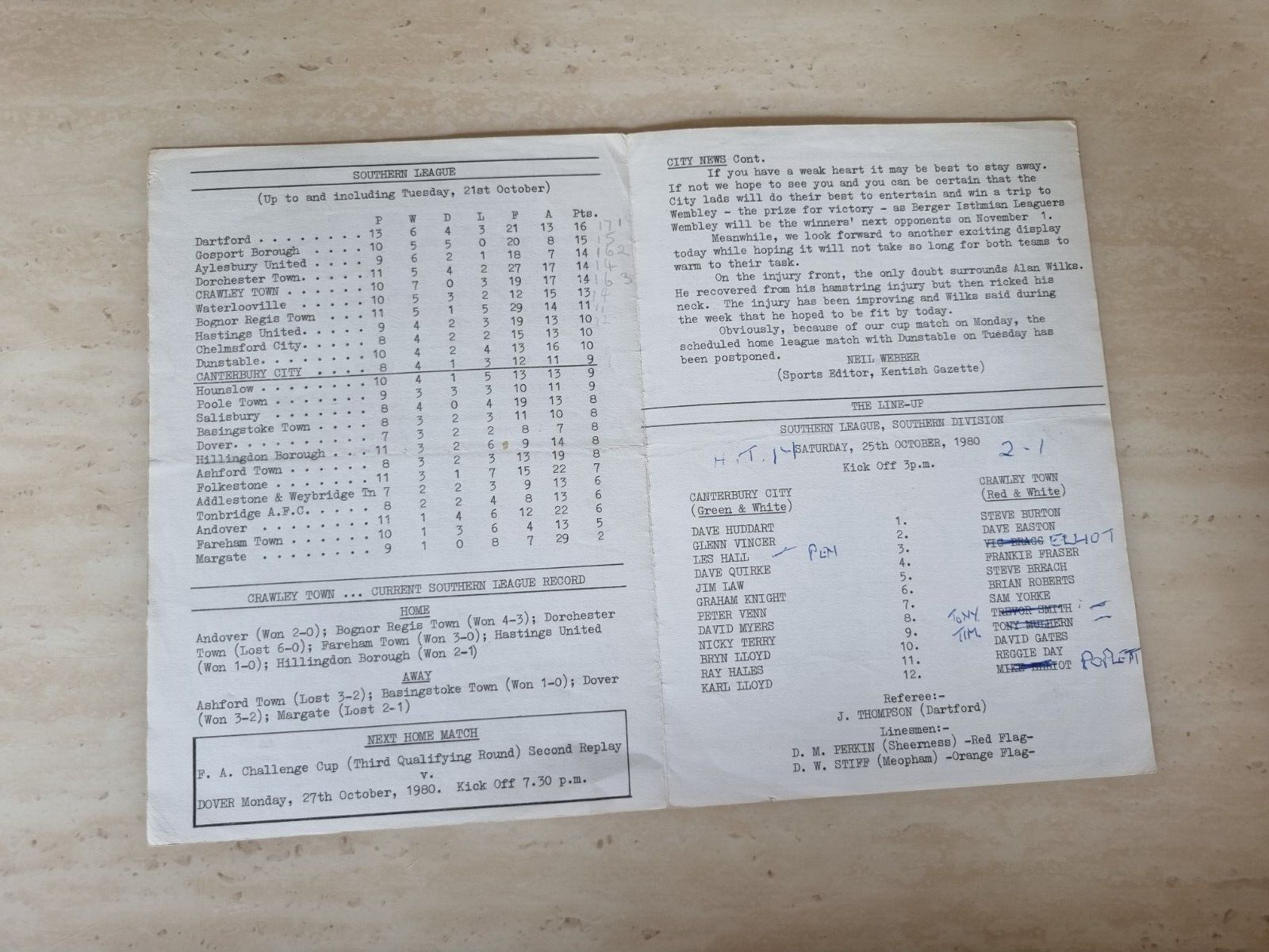 1980/81 Southern League League Canterbury City v Crawley Town – 25th October