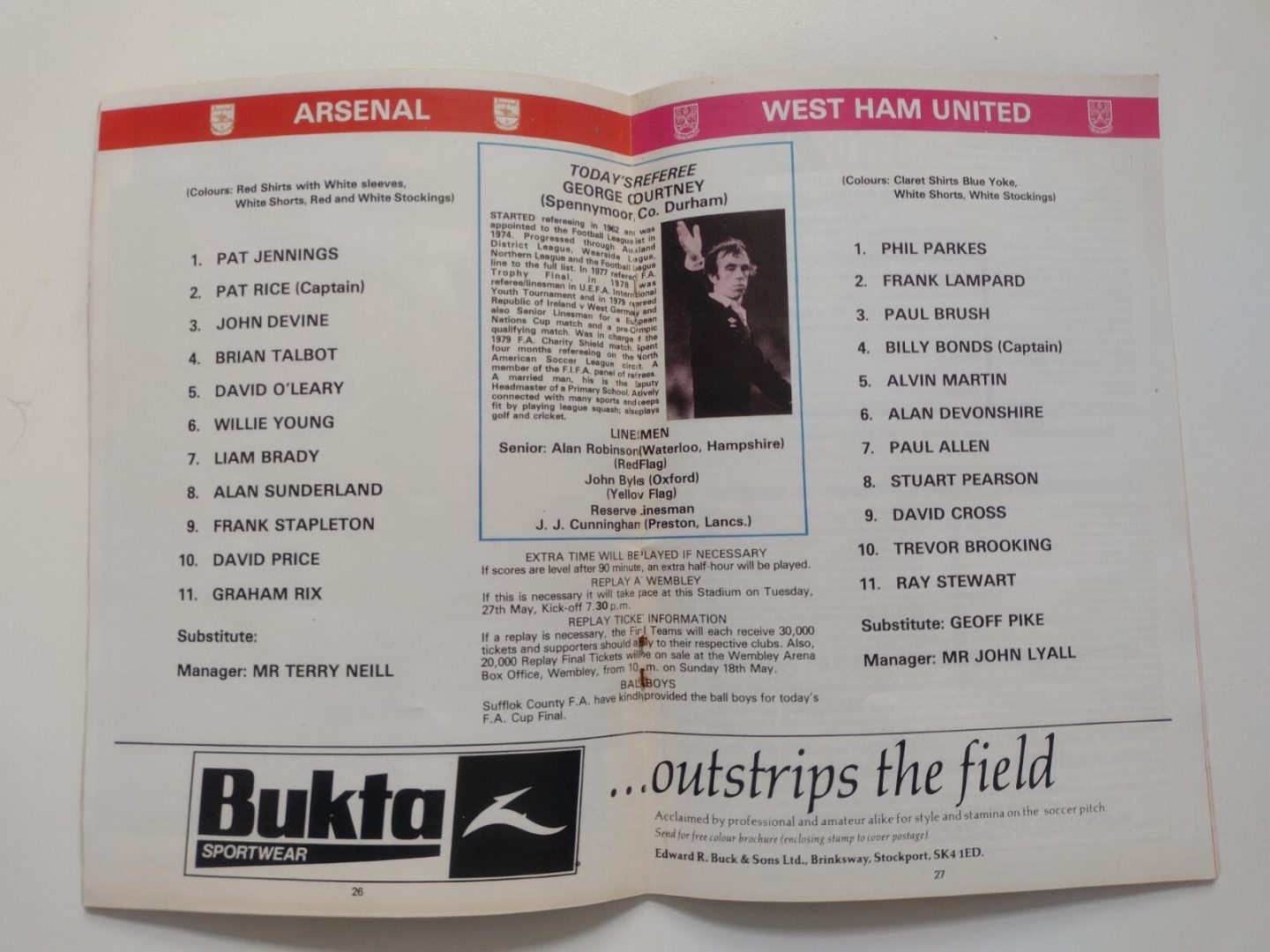 1980 Arsenal v West Ham United 10th May FA Cup Final Official Souvenir Programme