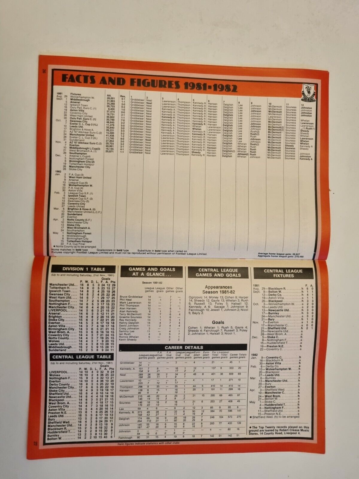 1981/82 LIVERPOOL v SOUTHAMPTON – 28th NOVEMBER
