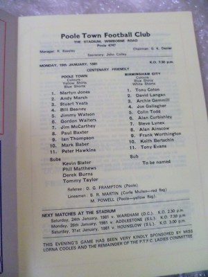 1981 Centenary Friendly Match Poole Town V Birmingham City, 19th Jan