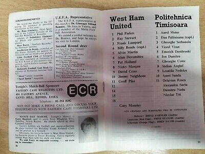 official football Programme From 1980/81 CUP WINNERS CUP – WEST HAM UNITED v POLITEHNICA TIMISOARA Quarter Final 1st Leg.