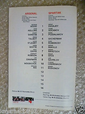 1982/83 ARSENAL v SPARTAK, 29 Sept UEFA Cup 1st RD 2nd Leg
