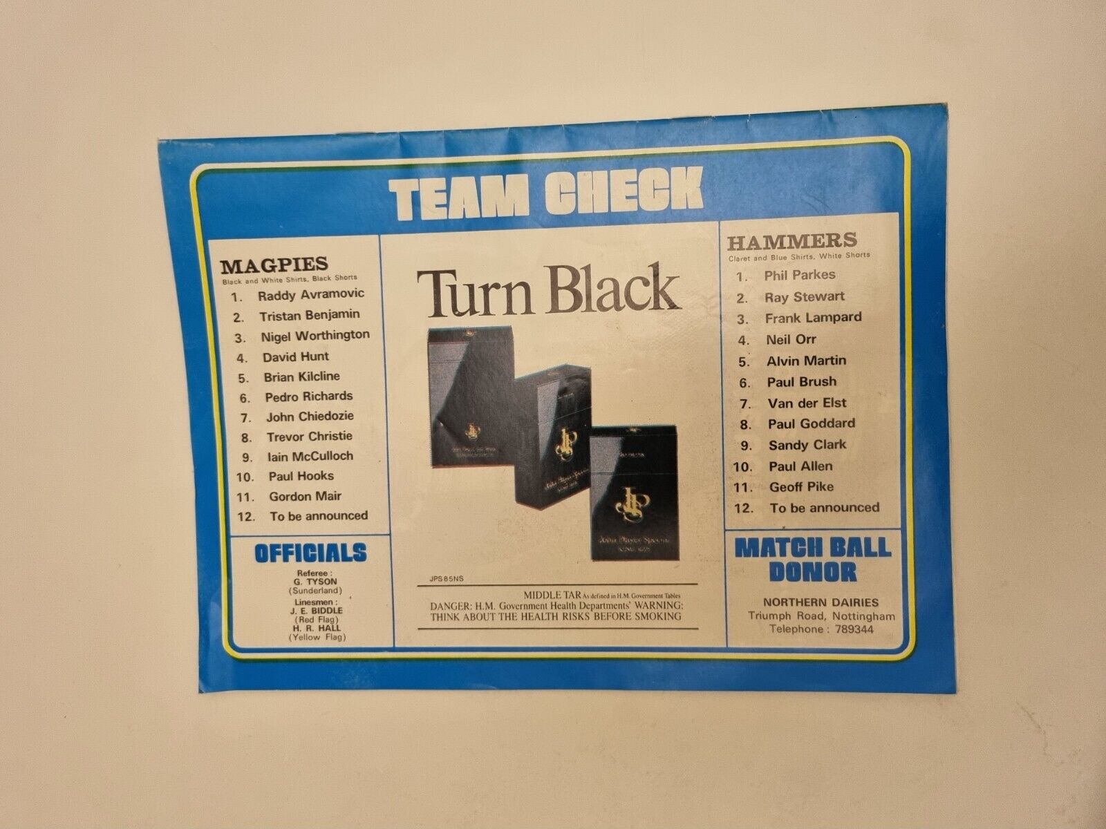1982 Football League Cup Notts County v West Ham United – 4th Round 7th December