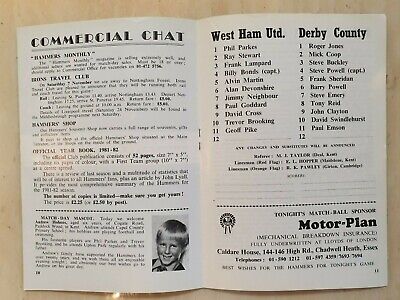 1982 LEAGUE CUP WEST HAM UNITED v DERBY COUNTY – 2nd Round 2nd Leg 27th October
