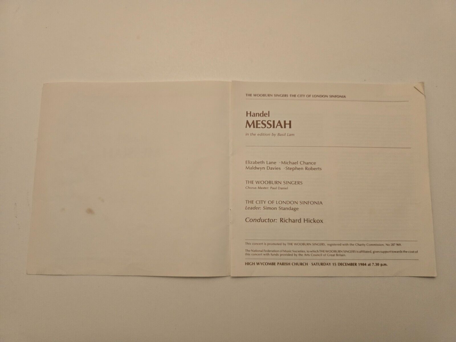 1984 Handel Messiah: The Wooburn Singers The City of London Sinfona