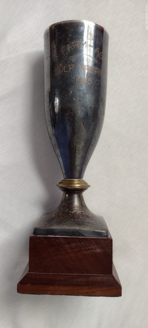 1985 Golf Trophy Cup Farm – AG Wooden Base Large Golf Trophy 335 mm Silver Plate