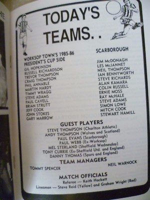 1986 Martin Hardy Testimonial Match- Worksop Town V Scarborough, 8 Feb