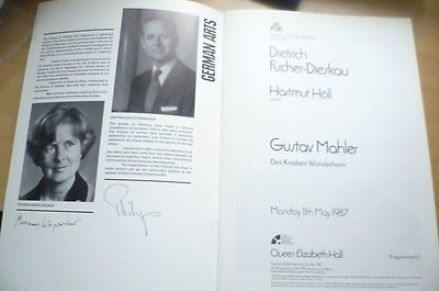 You are purchasing an original & vintage programme of: Queen Elizabeth Hall 1987-Festival of GERMAN ARTS~HARTMUT HOLL Piano,D F DIESKAU