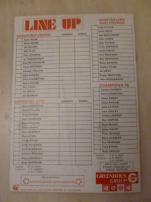 1987 Steve Emery Testimonial- Hereford United V Coventry City Fa Cup Holders