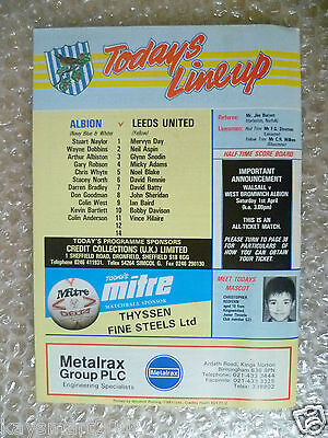 1989 West Ham Bromwich Albion v Leeds United 5th March