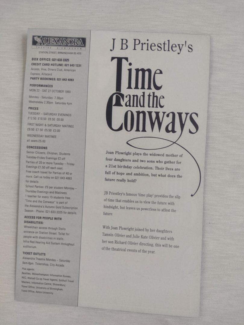 1990 Alexandra Theatre Flyer Time And The Conways Signed By Susan Kyd Original