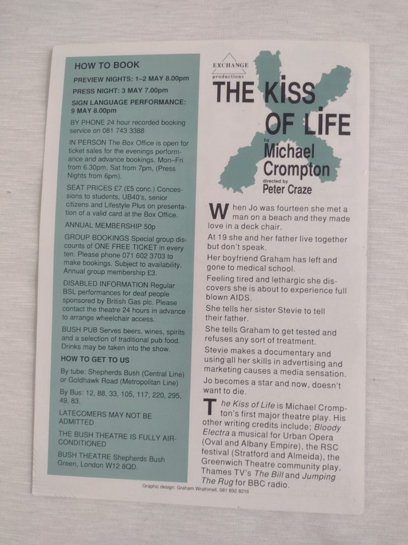 1991 Bush Theatre Flyer The Kiss Of Life Original Signature By Helen Levien
