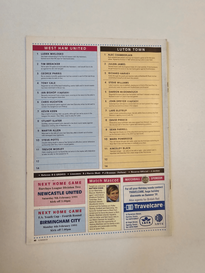 Be the first to review “1991 FA Cup Fourth Round Replay West Ham v Luton Town 30th January” Cancel reply