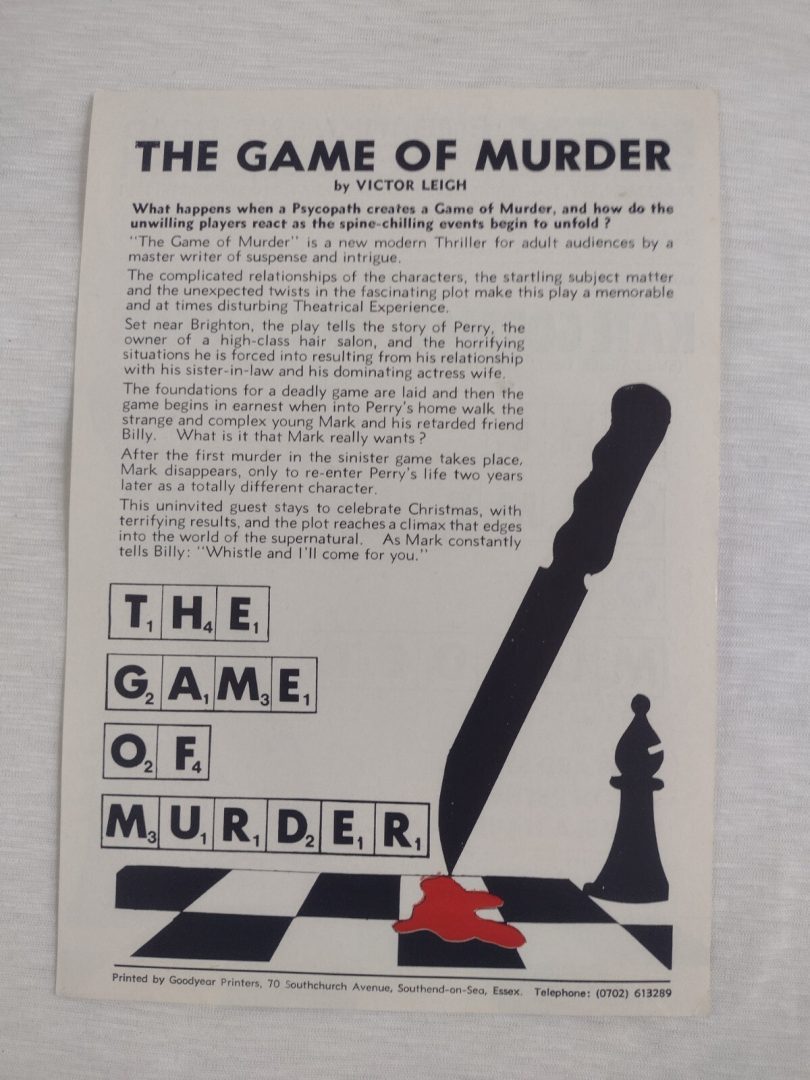 1991 Key Theatre Flyer The Game Of Murder – Autographed By Bruce James and other