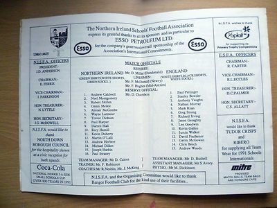 1991 Schools International NORTHERN IRELAND v ENGLAND, U-15- Victory Shield