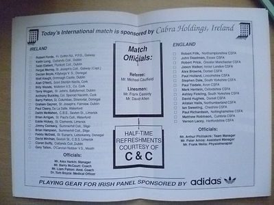 1991 Senior School International – IRELAND v ENGLAND