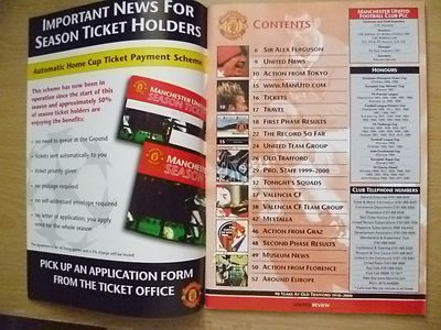 You are purchasing very collectable & Original football Programme of – 1999 UEFA Champions’ League – MANCHESTER UNITED v VALENCIA CF