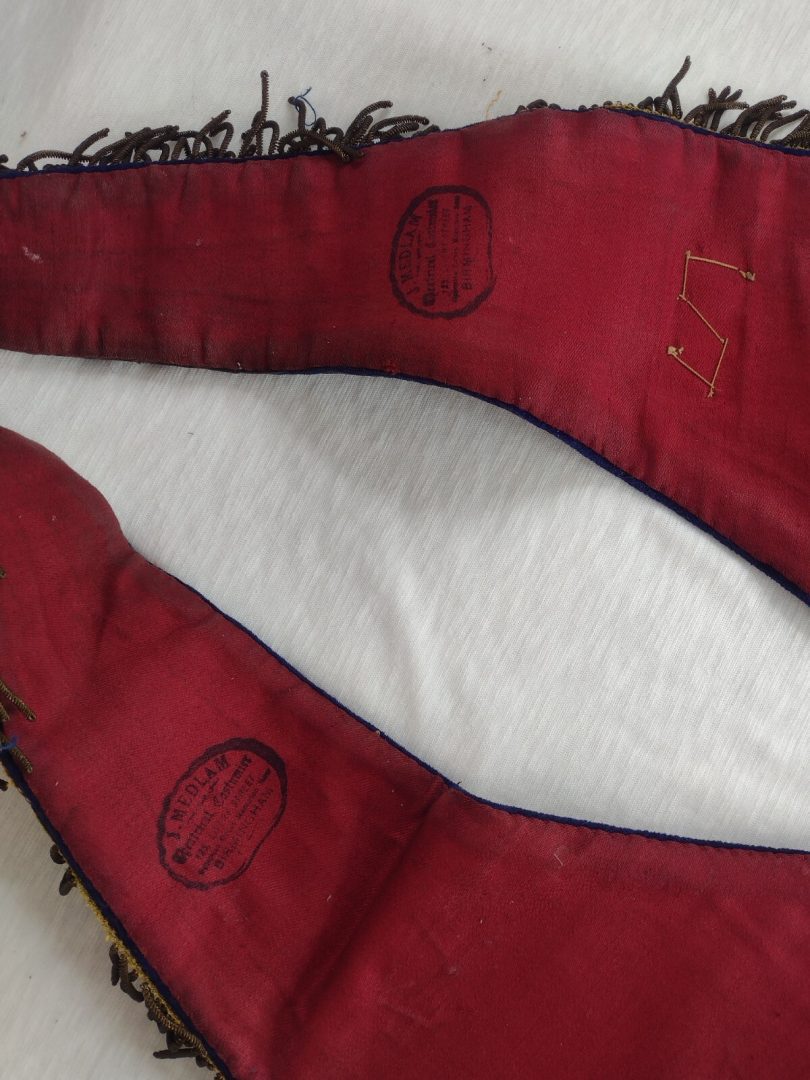 Size approximately Long 53 cm x Length 37 cm. I believe this to be an original item and as you can see in the picture it is in very good condition but showing genuine signs of age….Sash made with navy blue velvet cloth, golden bullion wire, golden bullion tassel, all medals are brass made, queen Victoria crown attaches. Maker is stamped on back. Please study pictures carefully to decide. Incredible detail on the item.