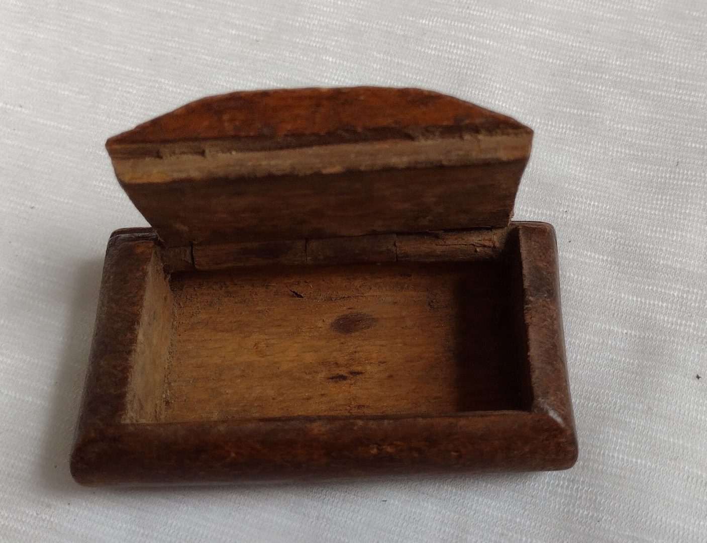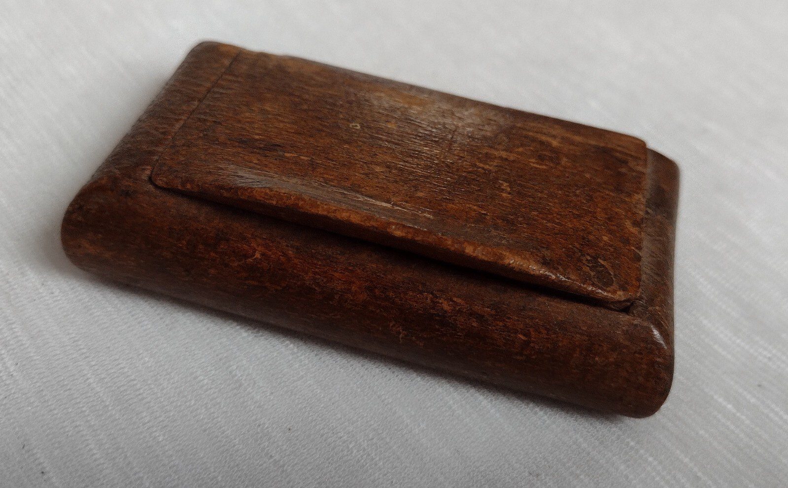 19th Century Pocket Snuff Box Wooden Handcrafted Antique Mini Trinket Box