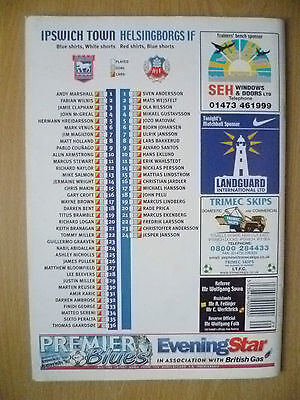 You are purchasing very collectable & Original football Programme of –2001 UEFA Cup – IPSWICH TOWN v HELSINGBORGS IF