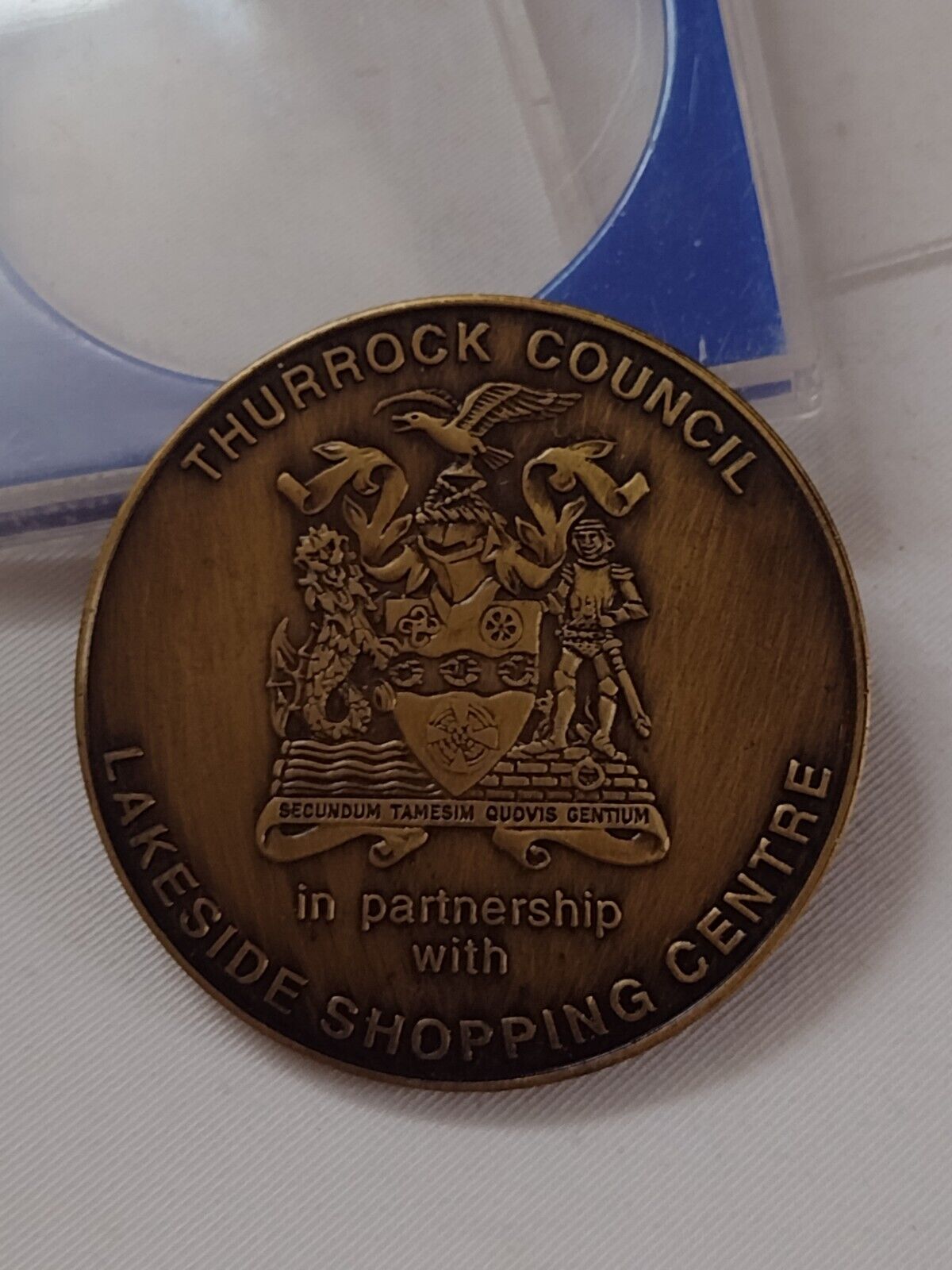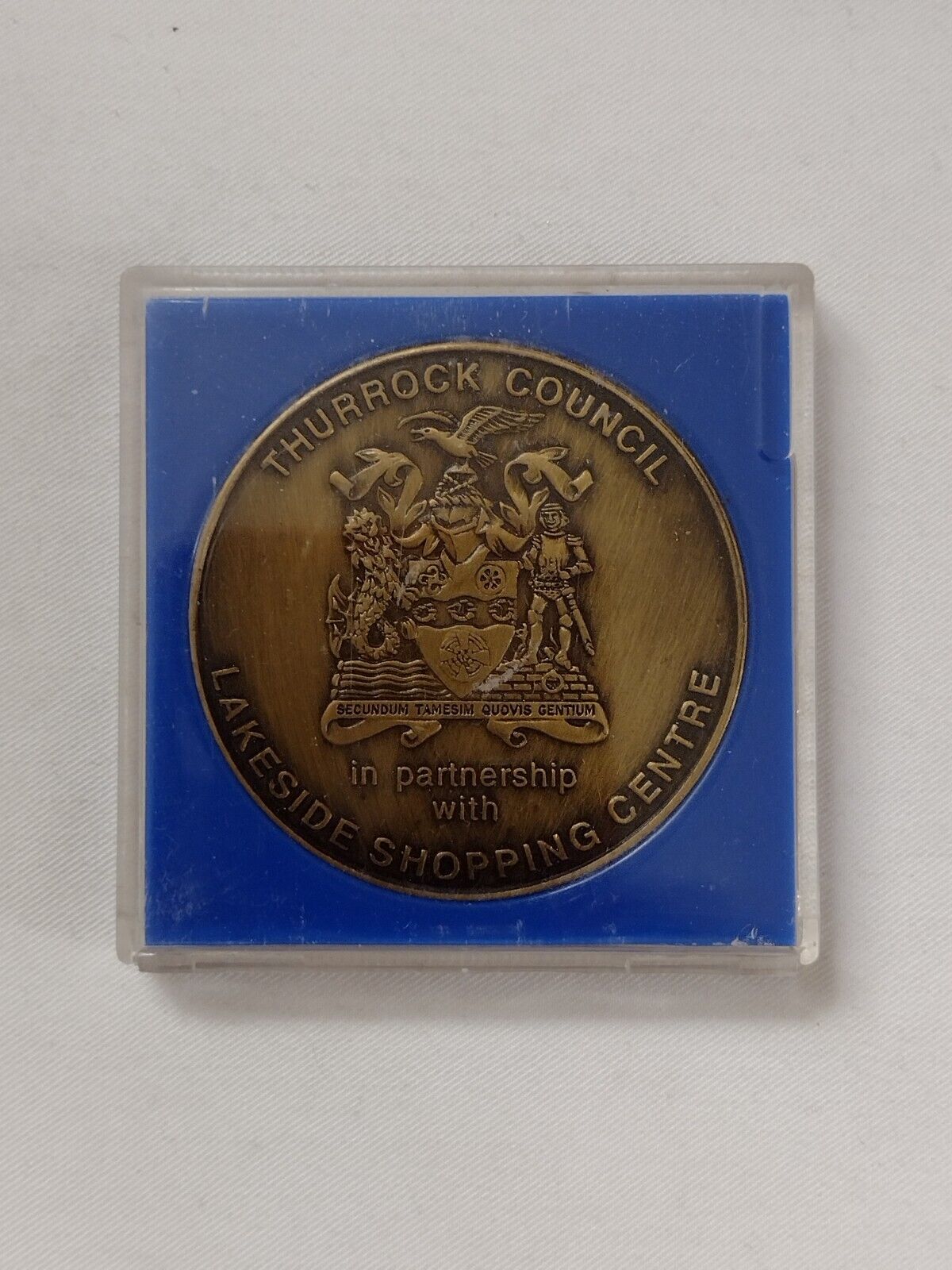 Seller note: Size approximately 50 mm tall and 50 mm wide . 2002 The Queen's Golden Jubilee Commemorative Medal with Original Box....Thurrock Council In Partnership With Lakeside Shopping CentreItem is very good condition....... Please study pictures carefully to decide.