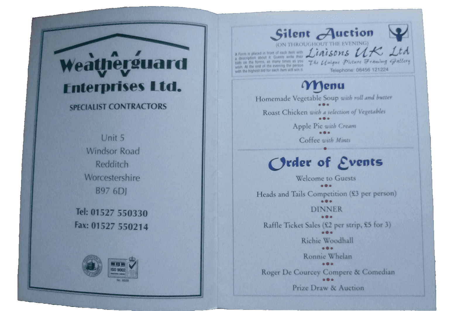 2009 BOXING- A Gentleman’s Sporting Dinner Menu, 6th February