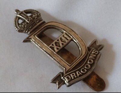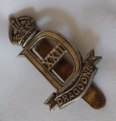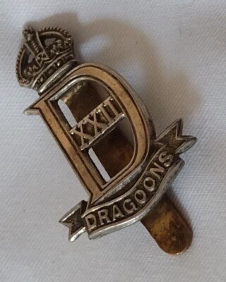 22nd Dragoons Cap Badge KC White Metal Maker Butler 48 Victoria St VINTAGE Org