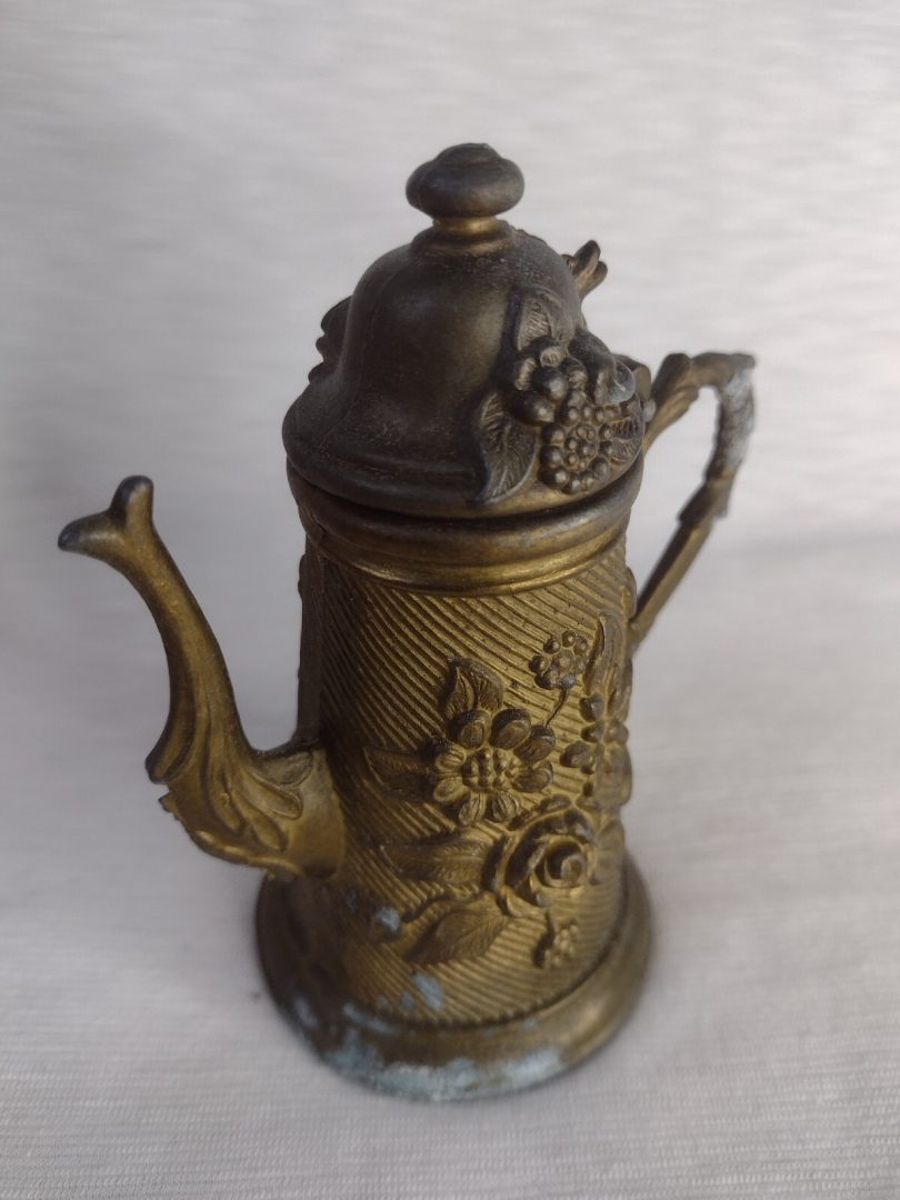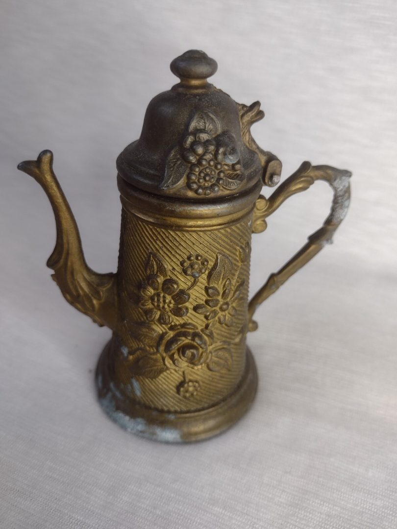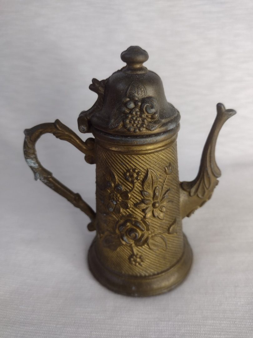 3D Floral Art & Craft Coffee Pot Teapot Miniature Solid Brass 11.5cm Vintage Org