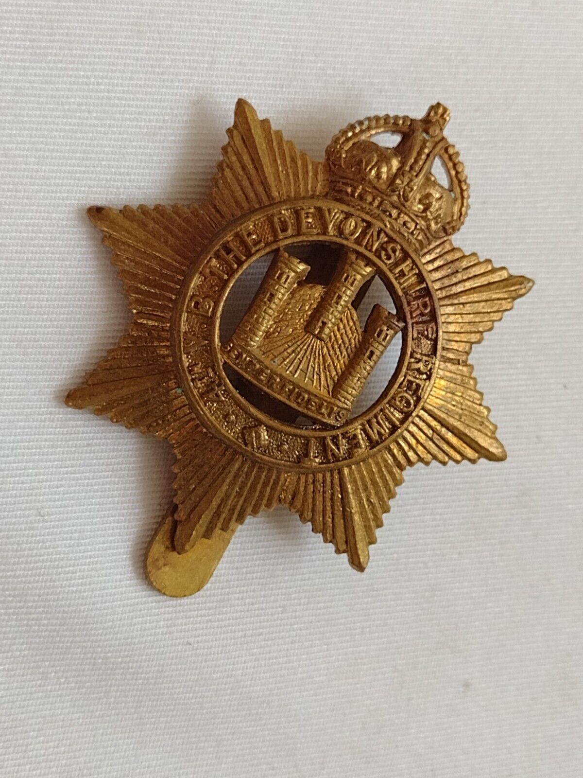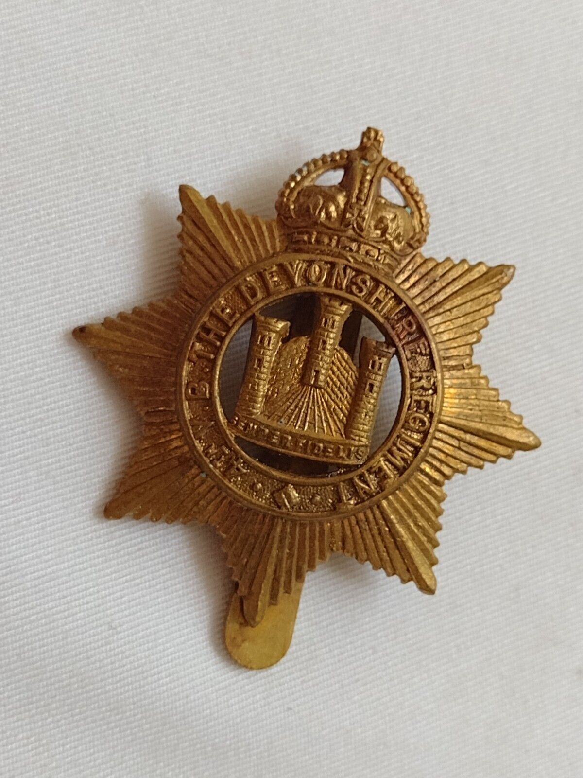 4th Vol Batt The Devonshire Regiment Cap Badge KC Slider Brass 43mm Antique Org