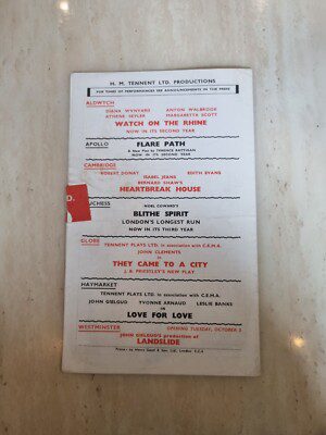 Seller note: This lovely programme remains in Very Good condition for its age. One has slight tear to the edge. Please see the picture as it forms part of the description.