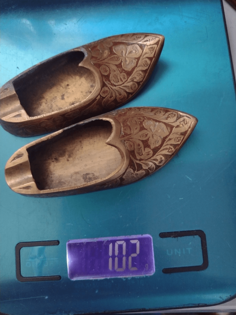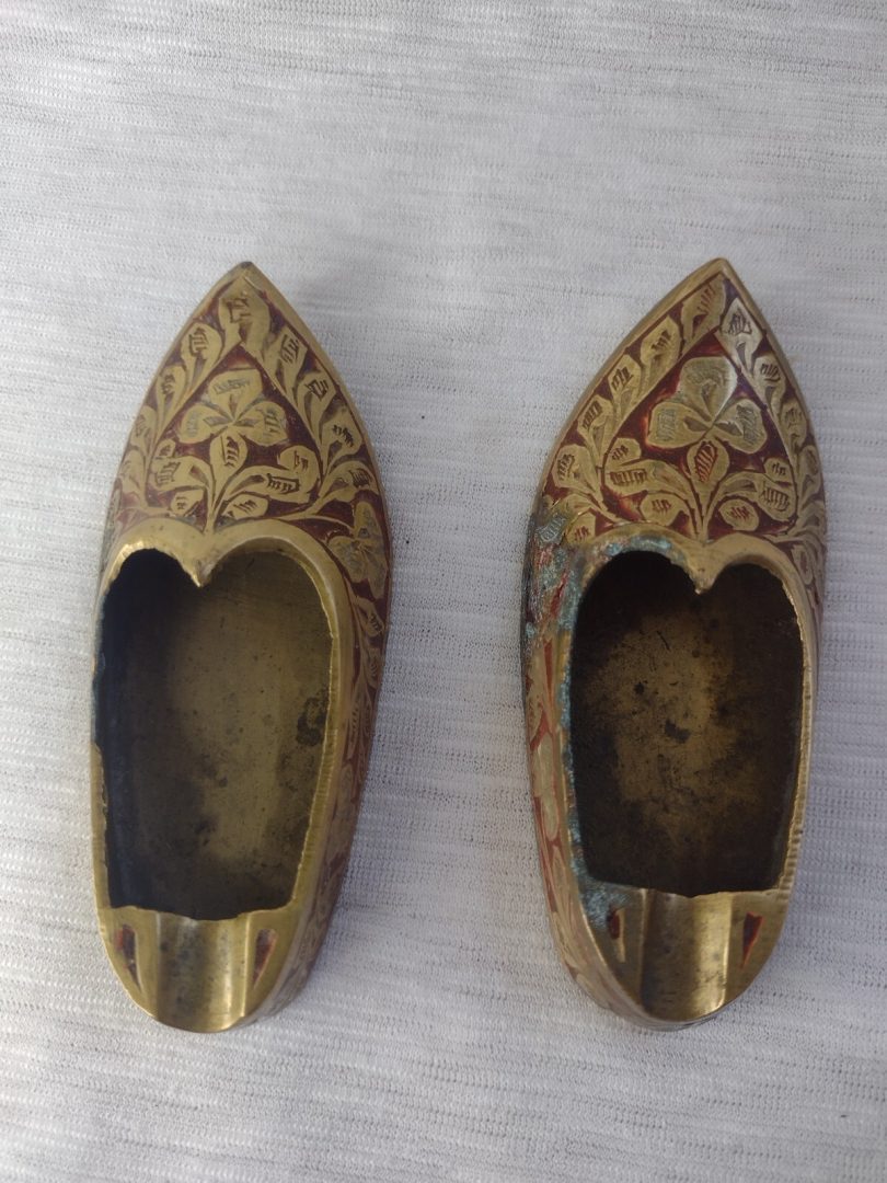 Aladdin Shoe Ashtray Brass Hand Paint Made In India Signed Pair 9cm Antique
