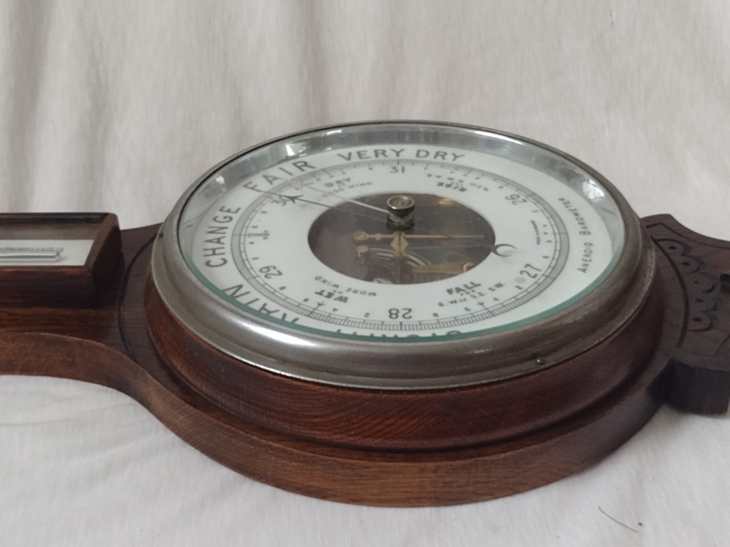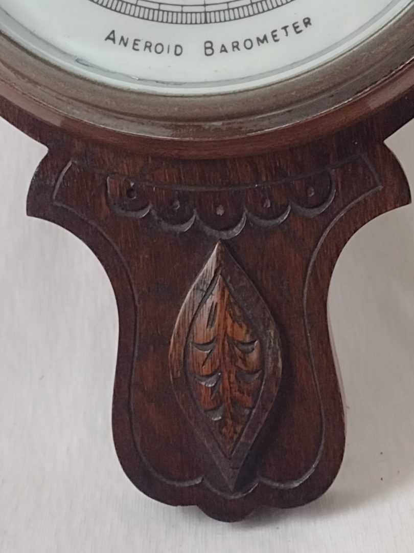Aneroid Barometer and Fahrenheit Thermometer Solid Oak Art & Craft Large 80cm