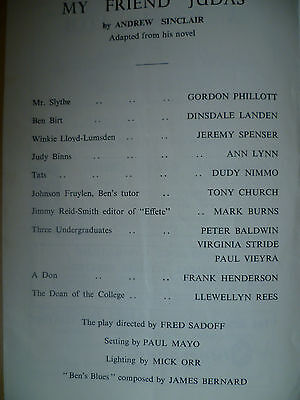 Arts Theatre Club Programme:MY FRIEND JUDAS by Andrew Sinclair,21st October,1959