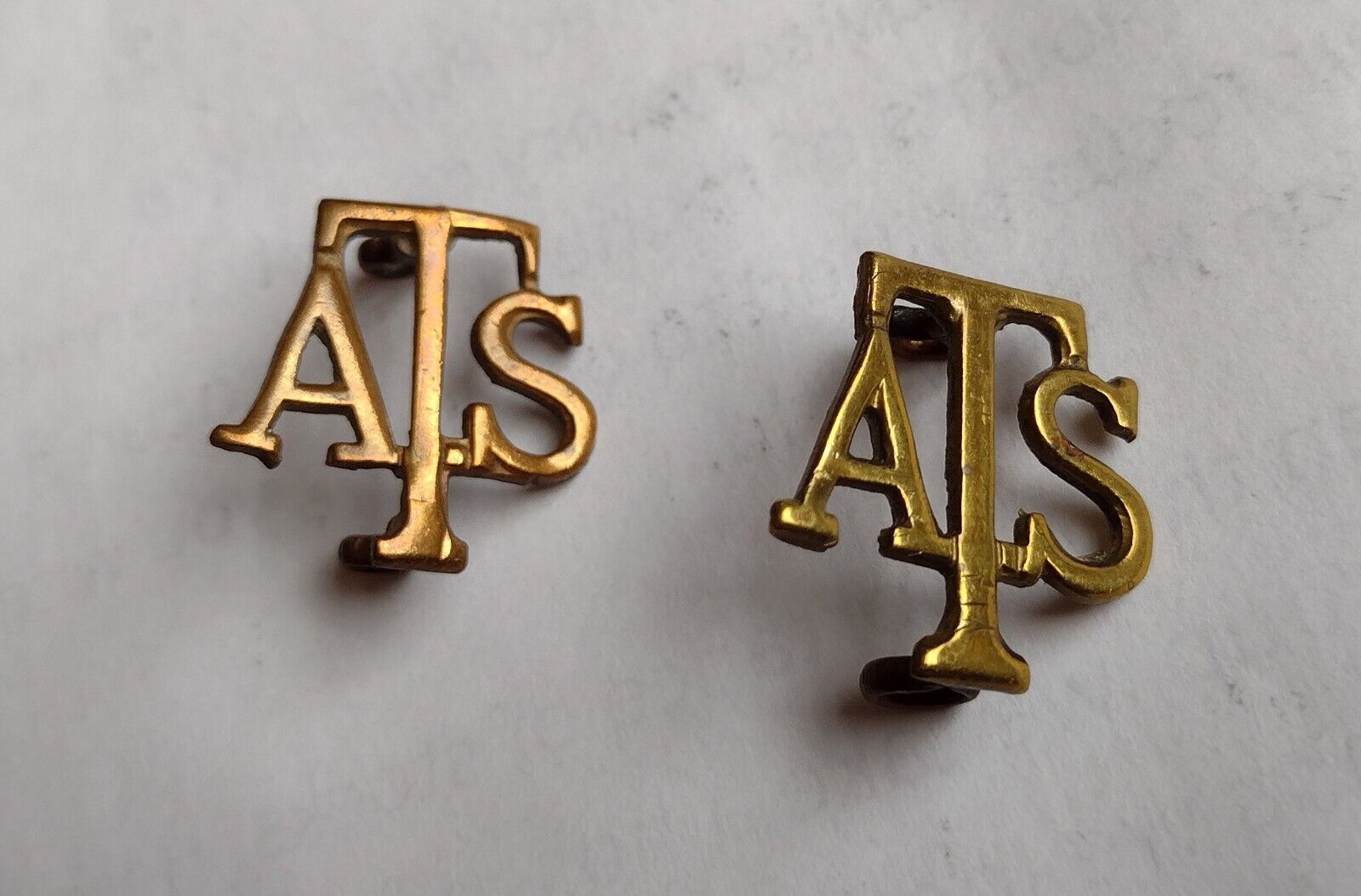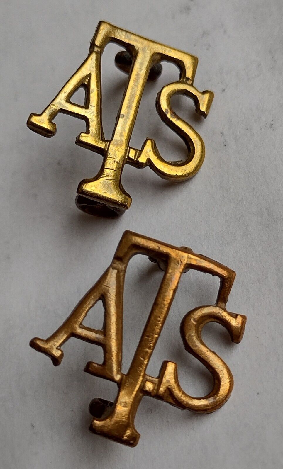 ATS Title Auxiliary Territorial Service Shoulder Title Brass ANTIQUE Org PAIR