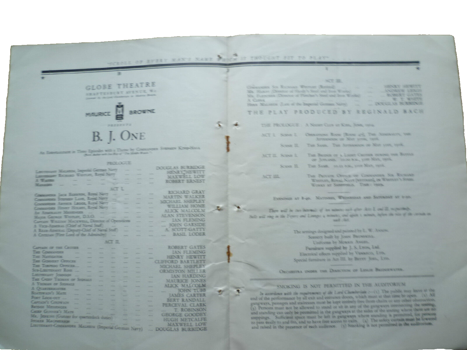 You are purchasing old an original vintage The GLOBE THEATRE PROGRAMME- B. J. ONE by Stephen King Hall