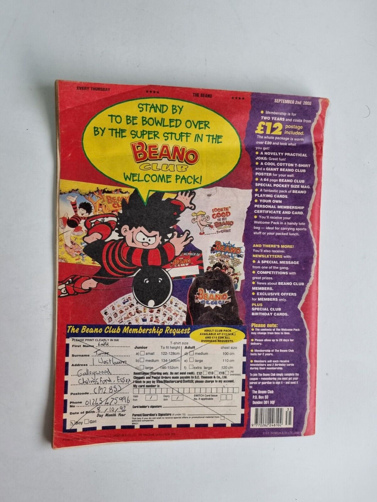 Beano Comic No. 3033 2nd September 2000