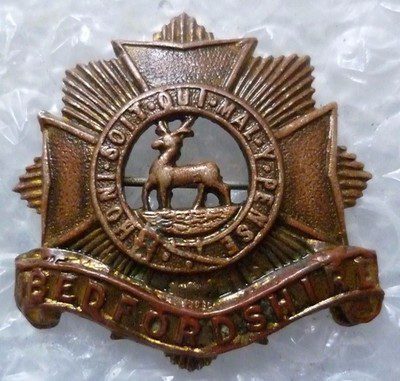 Bedfordshire Regiment Cap Brooch Badge All Brass ANTIQUE Original