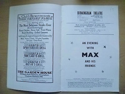 B’Ham Theatre Concert Programme 1970- An Evening with MAX BYGRAVES & His Friends