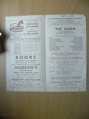 You are purchasing vintage & original Programme of : Birmingham Repertory Theatre 1947- THE GLEAM by Barry Jackson~W Chetham Strode