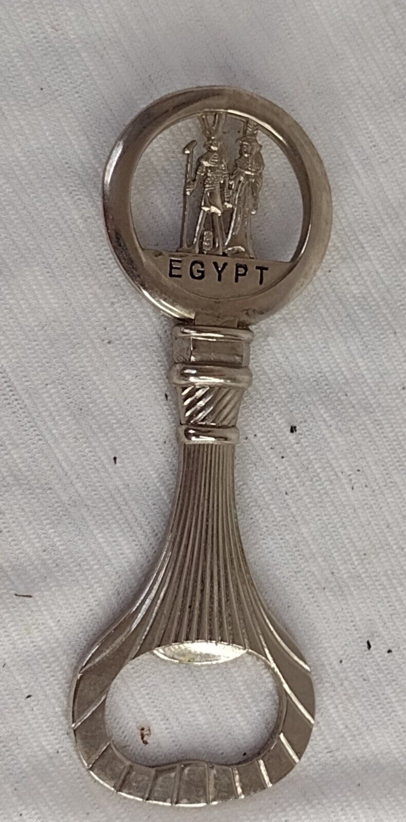 Bottle Opener Egypt Inscription Bottle Opener Stainless Steel 9.8cm Vintage Org