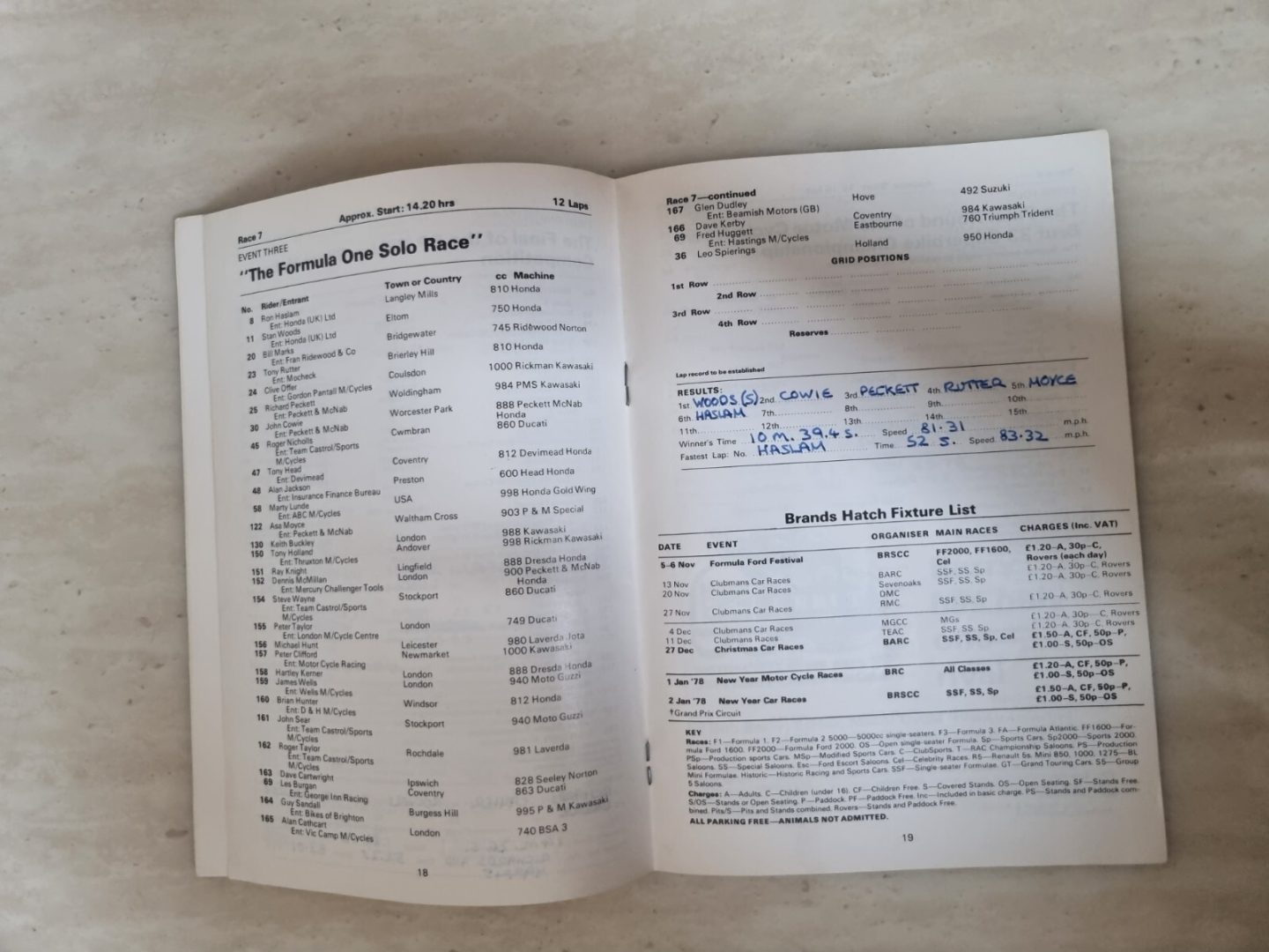You are purchasing a original Brands Hatch Programme as per the tittle. This lovely programme has writings remains in very good overall condition for its age. Please see pictures, as it forms part of the description. Please Check out my other items! and add me to your favourites list!
