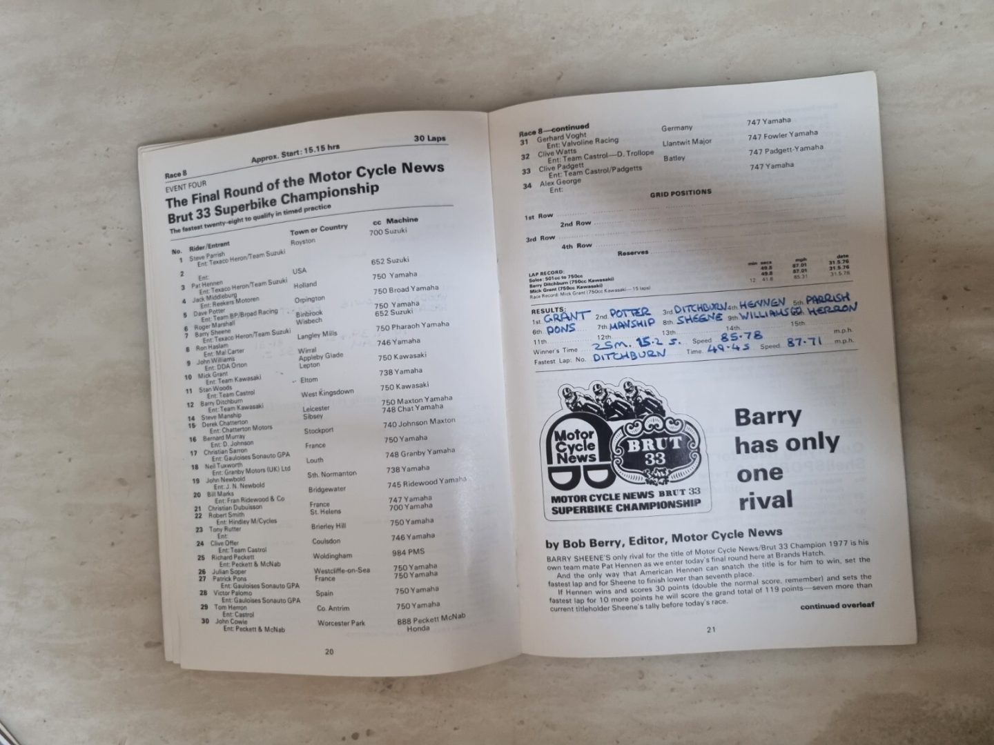 Brands Hatch Gauloises Powerbike International Motorcycle Road Races Oct. 1977