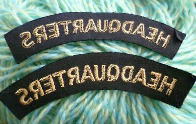 British Civil Defence Headquarters Cloth Badge Embroidery On Black – Pair New