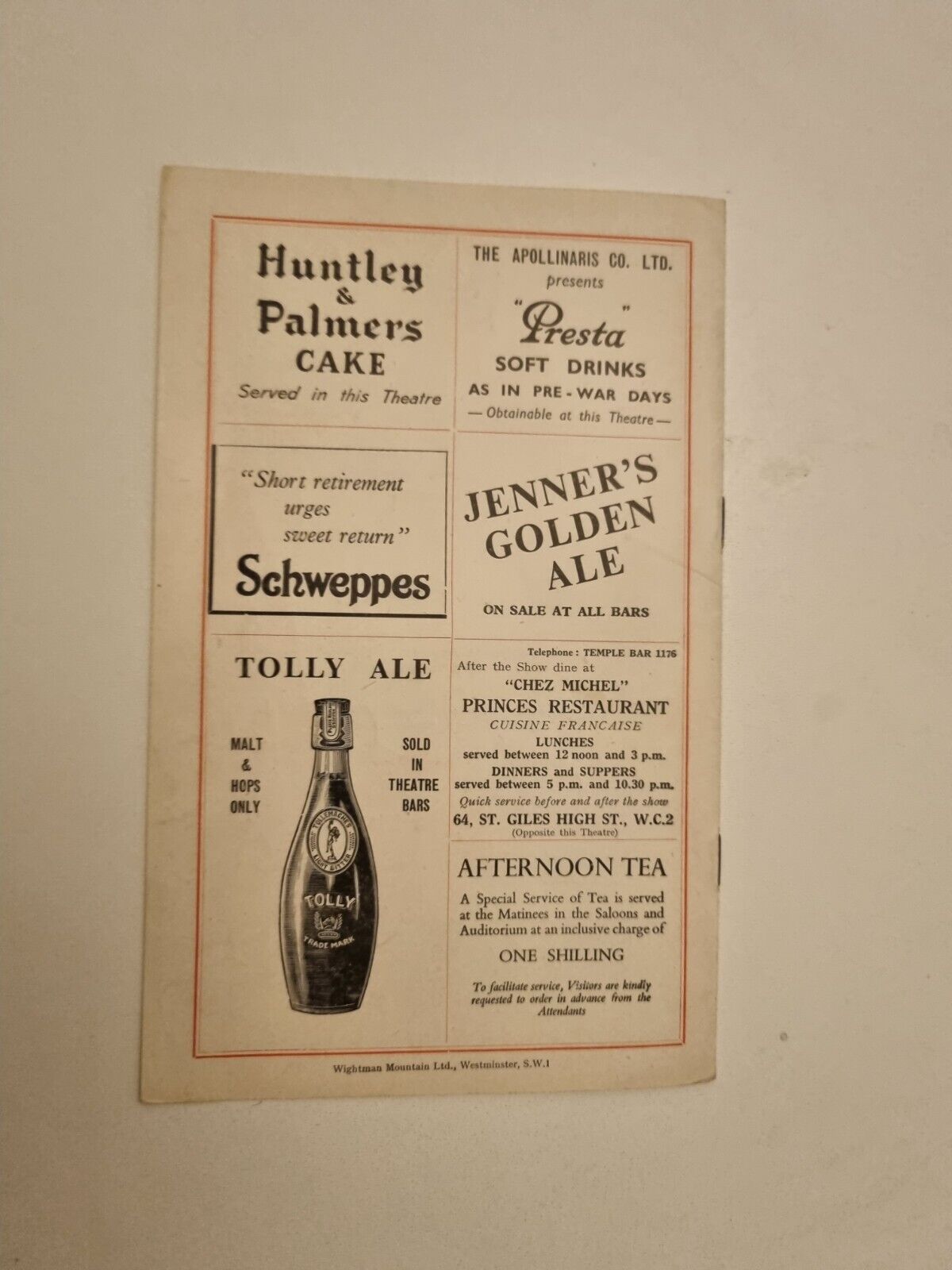 This lovely Original Theatre programme remains in very good condition for its age. Please see all the pictures as it forms part of the description.