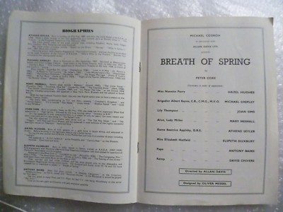 Cambridge Theatre Programme BREATH OF SPRING A Seyler,M Shepley,M Merrall,J Sims